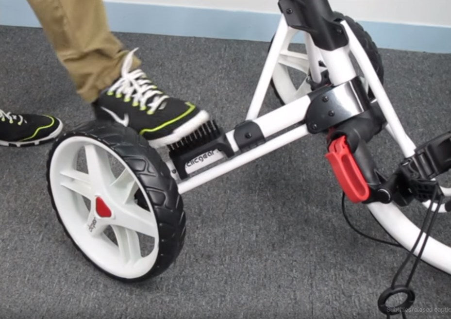 The Clicgear® Shoe Brush clips on easily to the standard wheel strut for easy shoe cleaning. Heavy nylon reinforced plastic, with sturdy bristles for cleaning cleats or clubs. Can be attached to both the left and right hand rear wheel struts.