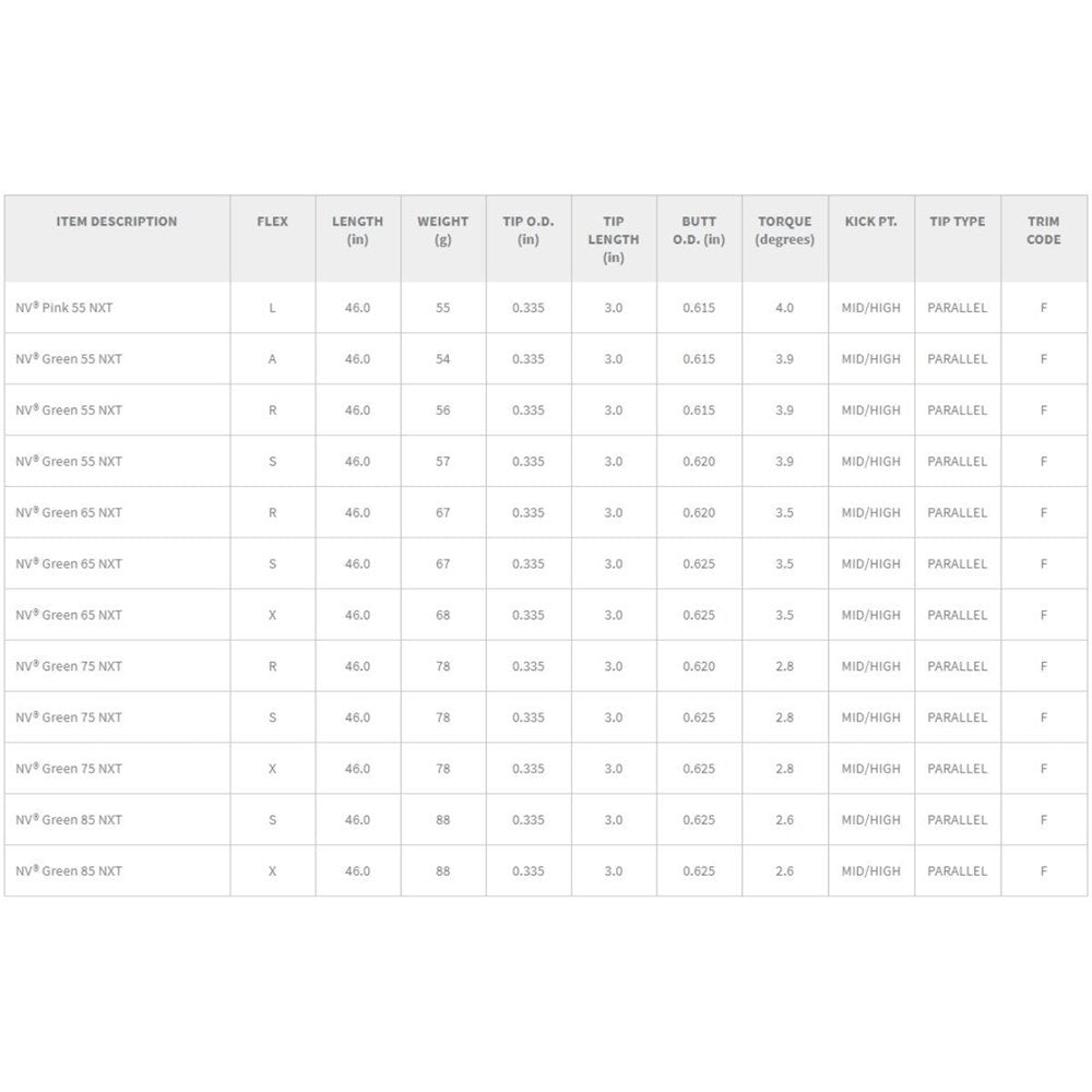 The new NV® Green features the same constant taper design to a smooth and stable feel shot after shot. The next generation NV® also incorporates ALDILA®’s NexGen Micro Laminate Technology® (MLT) - which uses more than 20 layers of ultrathin, aerospace-grade prepreg, that eliminate unwanted gaps and “dead zones” that can occur during the manufacturing process. MLT enhances feel and eliminates inconsistent shots cause by shaft variability.