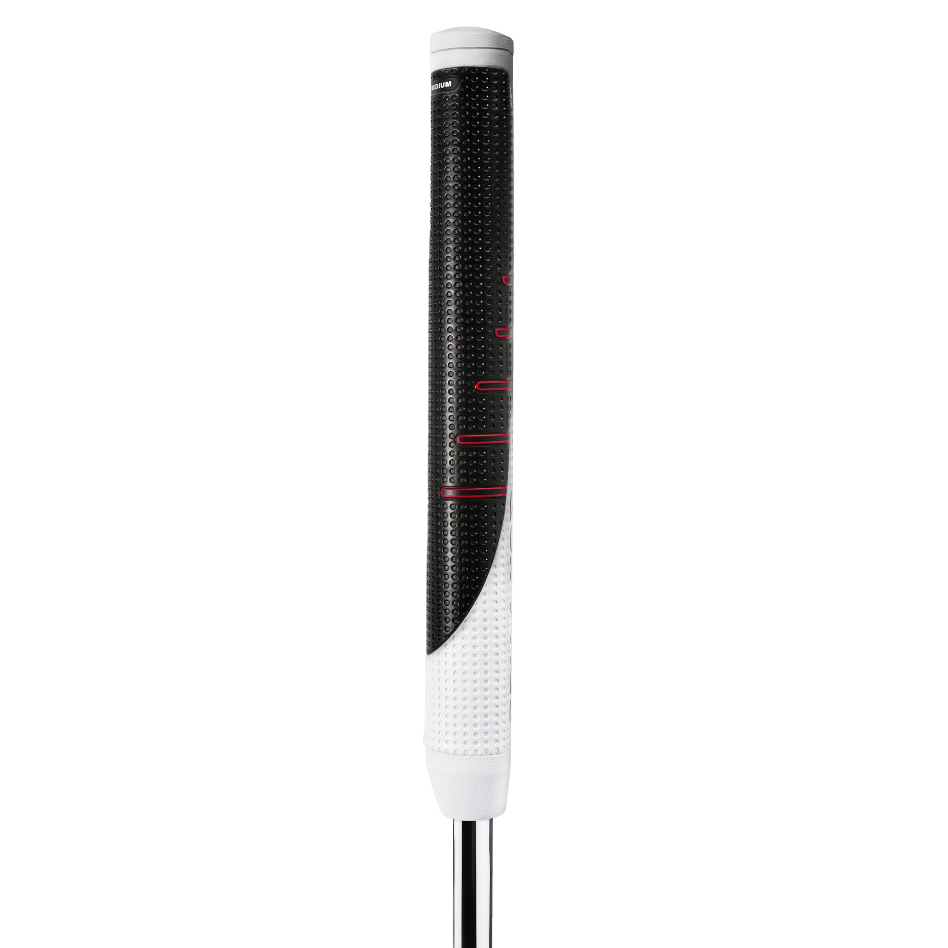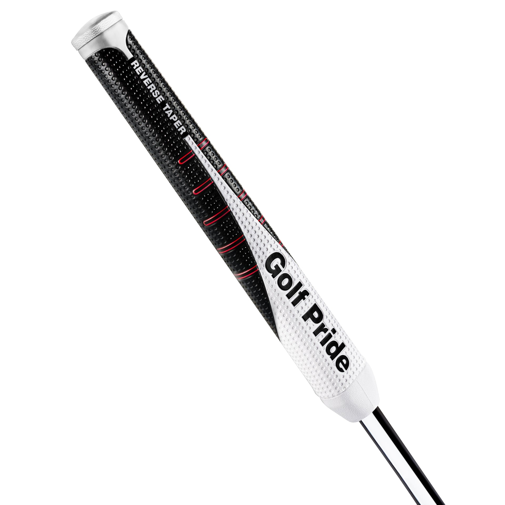 Reverse Taper flips the putter grip on its head. Our take on a more modern-day putter grip style has a larger lower hand to help optimize both hands in your stroke. Leading to a more square putter face at the moment of impact. No matter your putting style. Our round shape and flat front paddle bring added comfort and control. With a softer, tackier feel and dimple pattern, Reverse Taper is designed to help you step into every putt and own the moment.