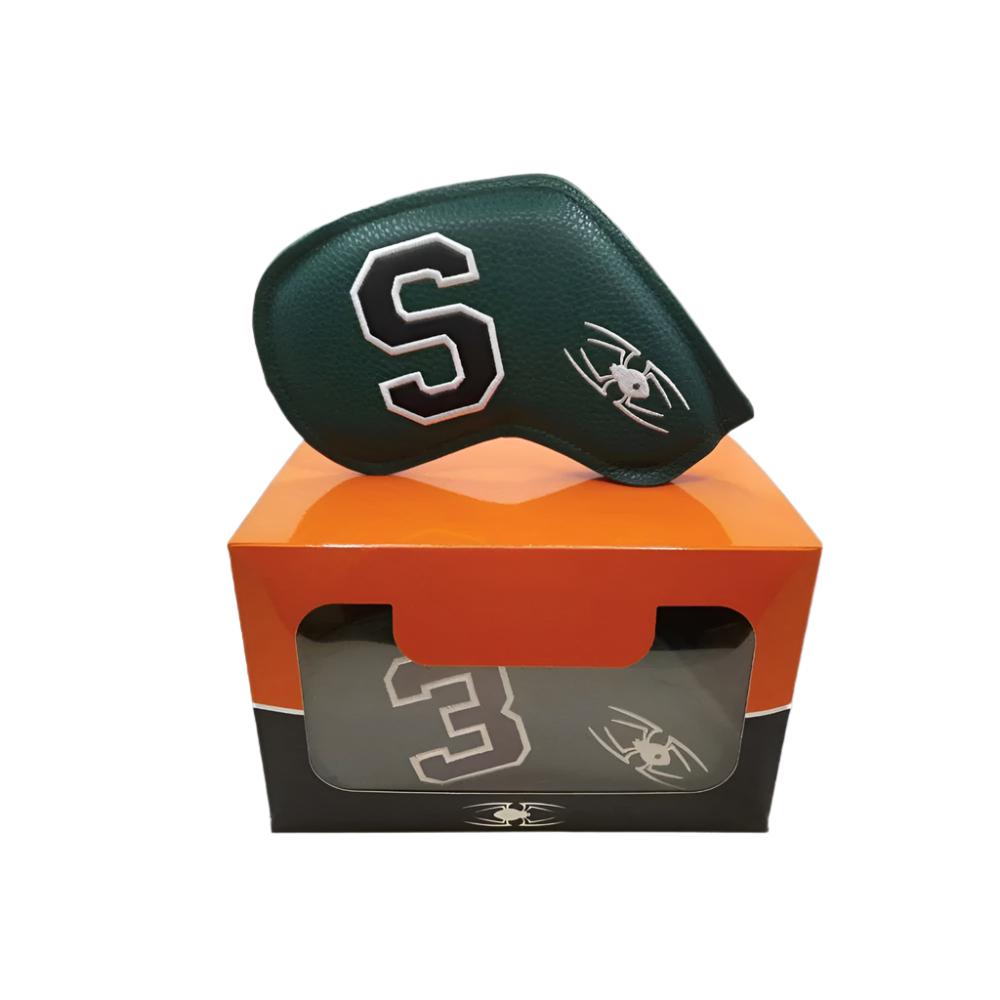 Introducing Spider's Faux Leather Long Neck Iron Headcover to protect your clubs . Available in the colour green and navy.