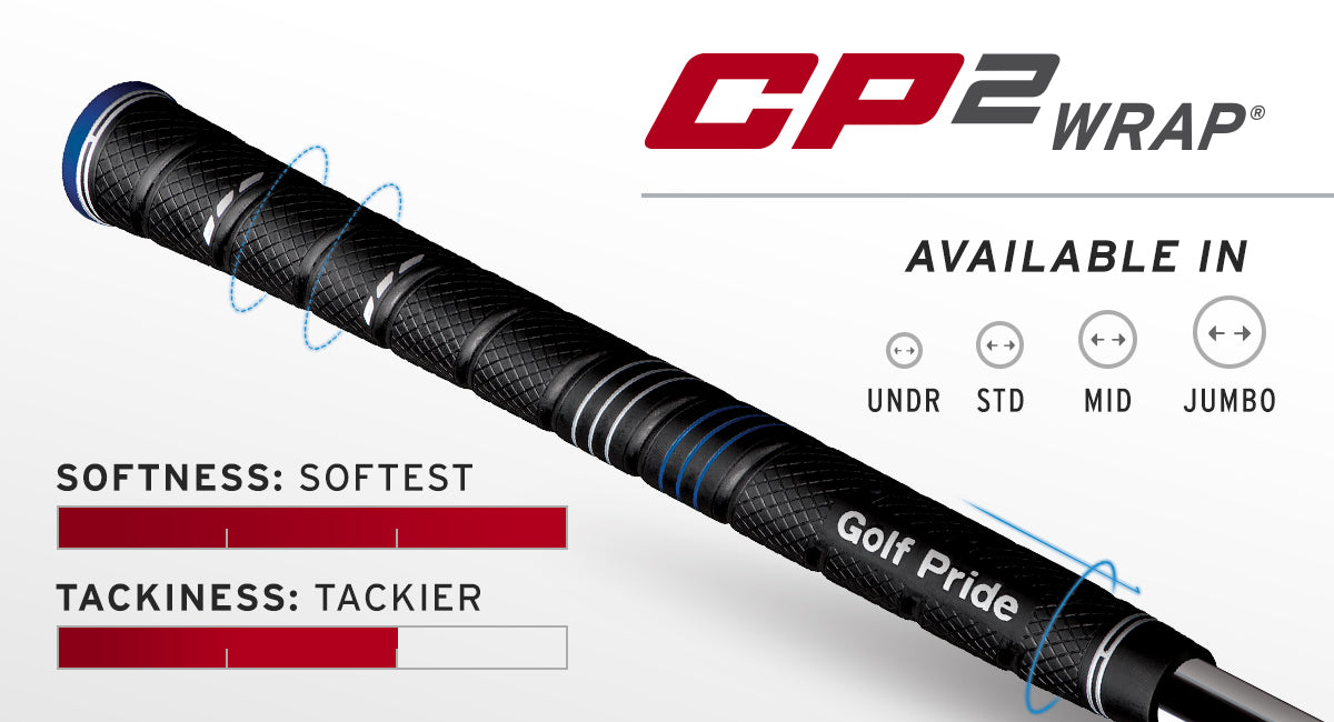 Combining high-performance technology with a soft, tacky feel, the innovative CP2 Wrap® delivers comfort and control for superior performance. CP2 features Golf Pride’s exclusive Control Core® technology, an inner core stabilizer that is specifically engineered to reduce torque. A larger lower hand geometry simulating four extra layers of tape in the lower hand encourages even grip pressure. With the CP2, control fits in the palm of your hand.