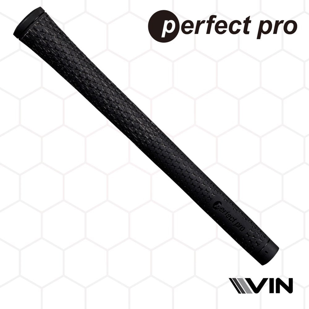 A black golf club grip with half cord texture and the branding 'perfect pro' visible endorsed by vin golf